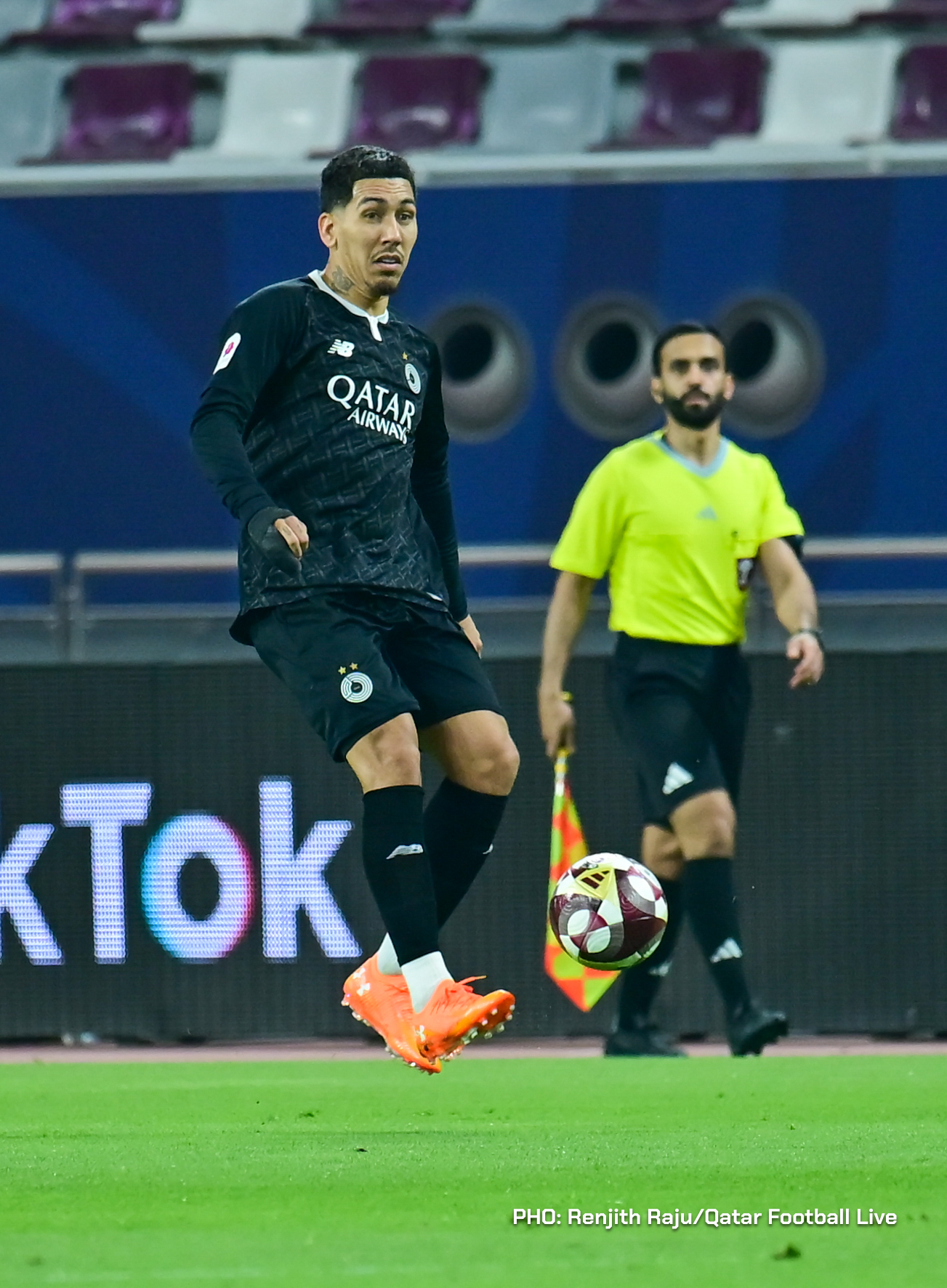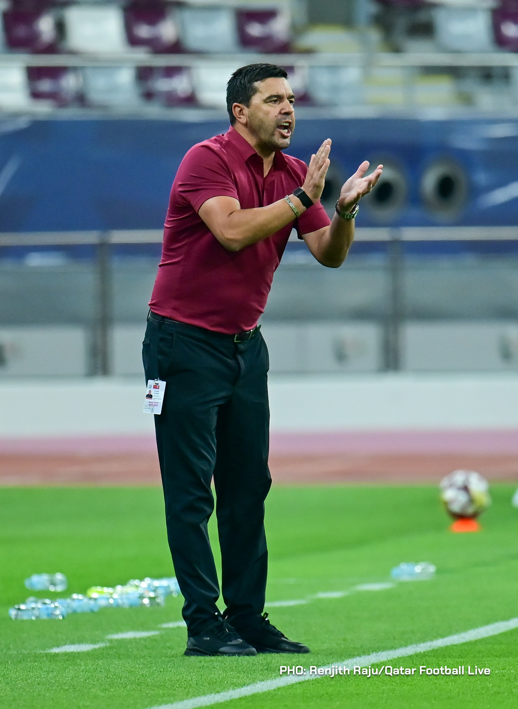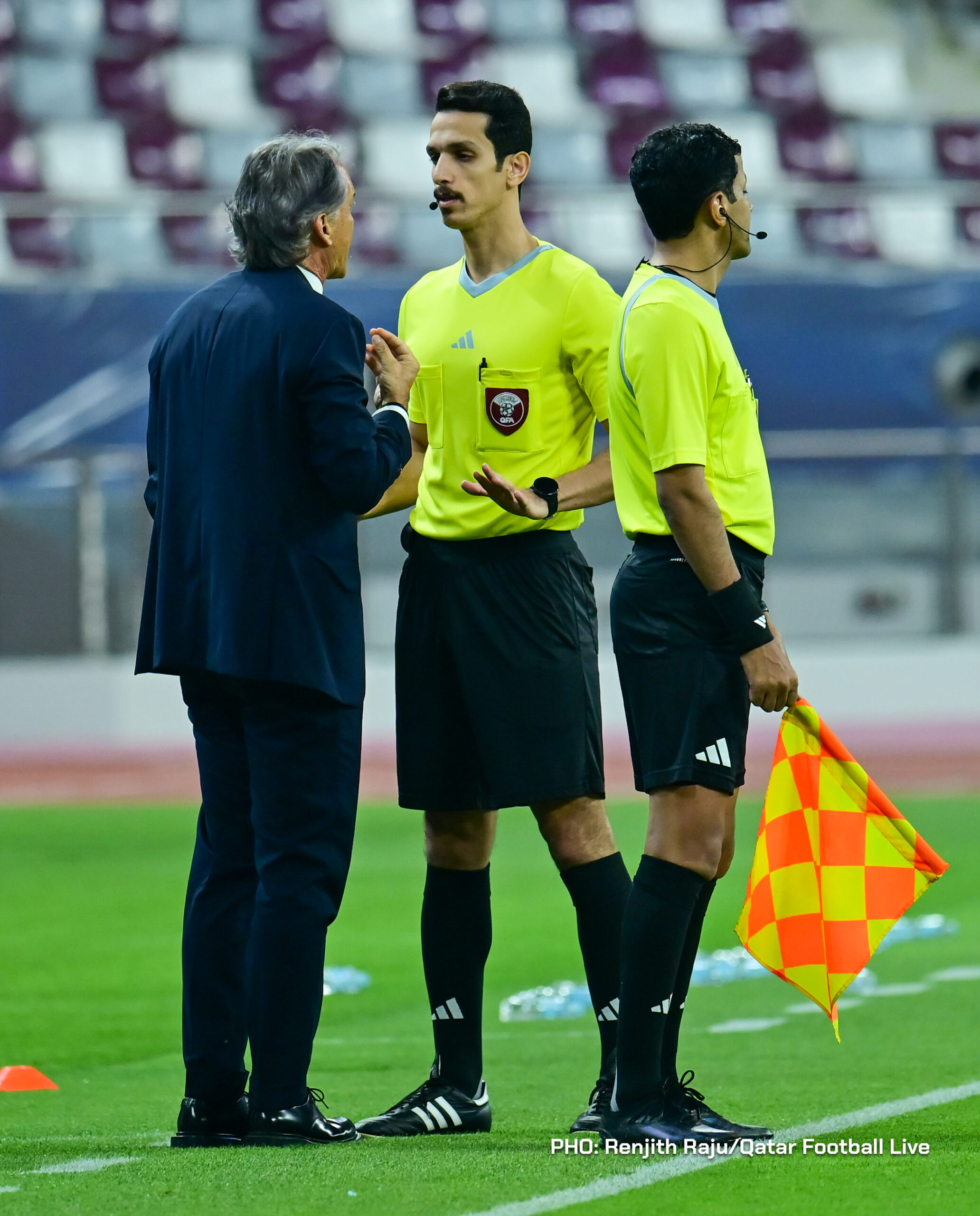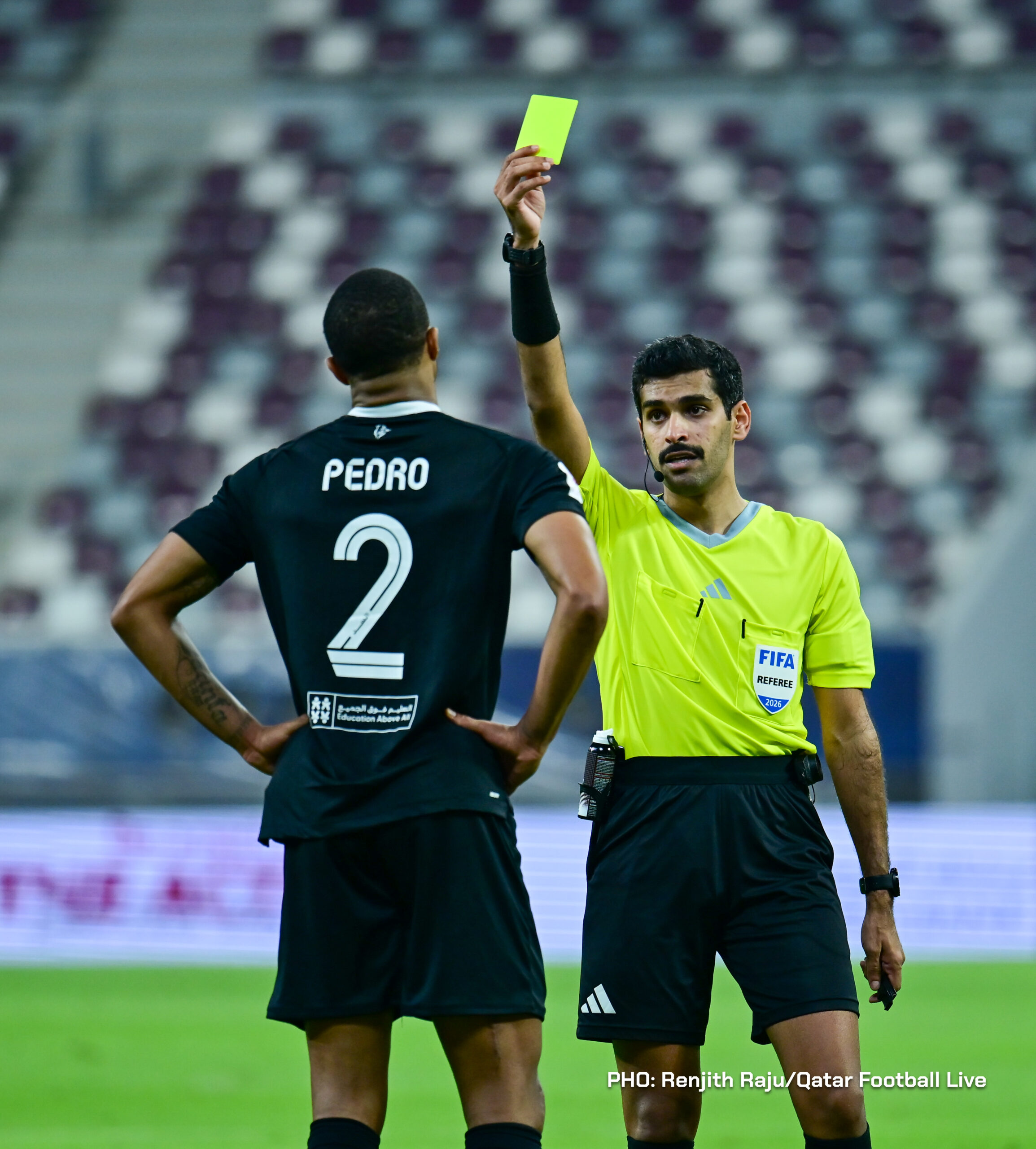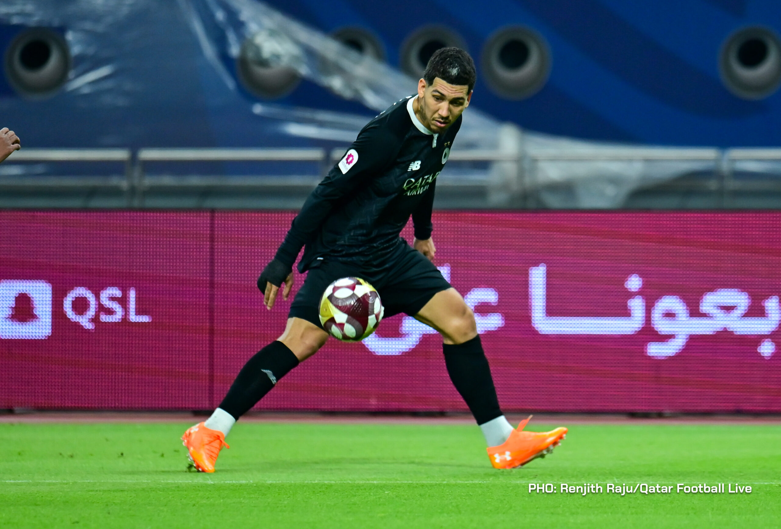 Paulo Silva (#6), Anas Abweny (#15) of Al Sadd SC and Rodriguez Sanchez (#10) of Al Arabi SC in action during the match between Al Arabi SC and Al Sadd SC in the week 19 of the Doha Bank Stars League 2025-26 played at Khalifa International Stadium Doha, Qatar on 17 March, 2026. (Photo by Renjith Raju/QFootLive)